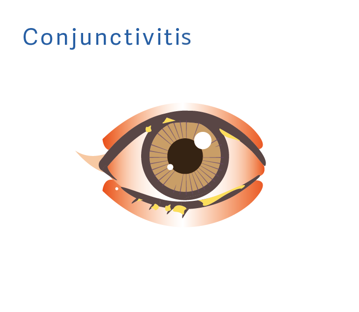 Conjunctivitis can be caused by bacteria, viruses, allergies or irritations in the eye.17 Symptoms include:17