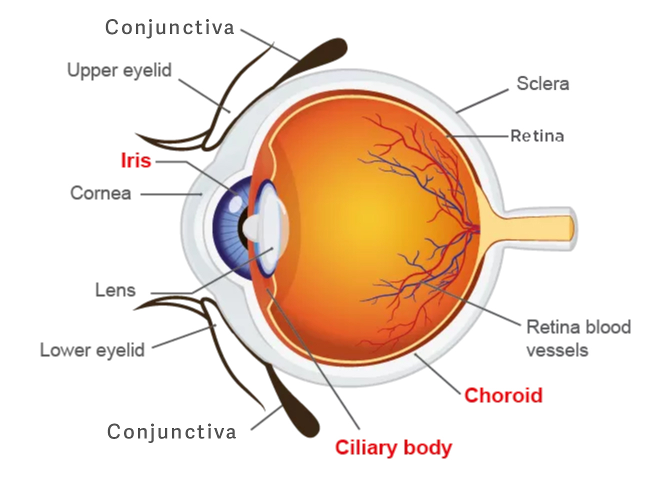 - Uveitis: An infection that causes the uvea to become red and swollen. Different types of uveitis affect different parts of the uvea.7