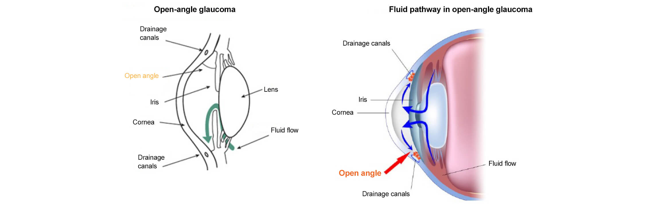 ‘Open-angle’ means that the drainage angle between your iris (the coloured part of your eye) and cornea (the clear dome that covers the front of your eye) is wide and open – which is normal.3,4