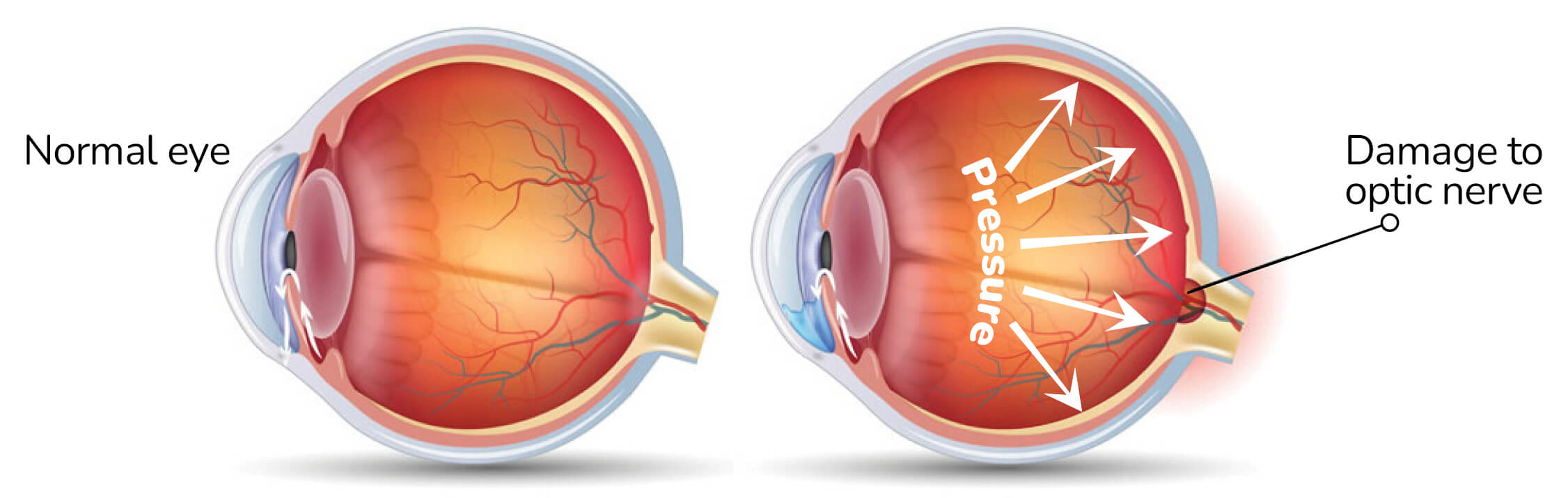Glaucoma is a common illness that affects the optic nerve.1,2 It happens when the pressure of the fluid inside your eye becomes too high.1,2 The increased pressure inside the eye kills nerve cells and damages your optic nerve, leading to vision loss.1,2
